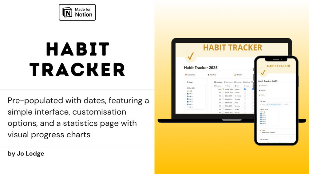 Stay consistent with your goals in 2025 with this pre-populated Notion habit tracker!